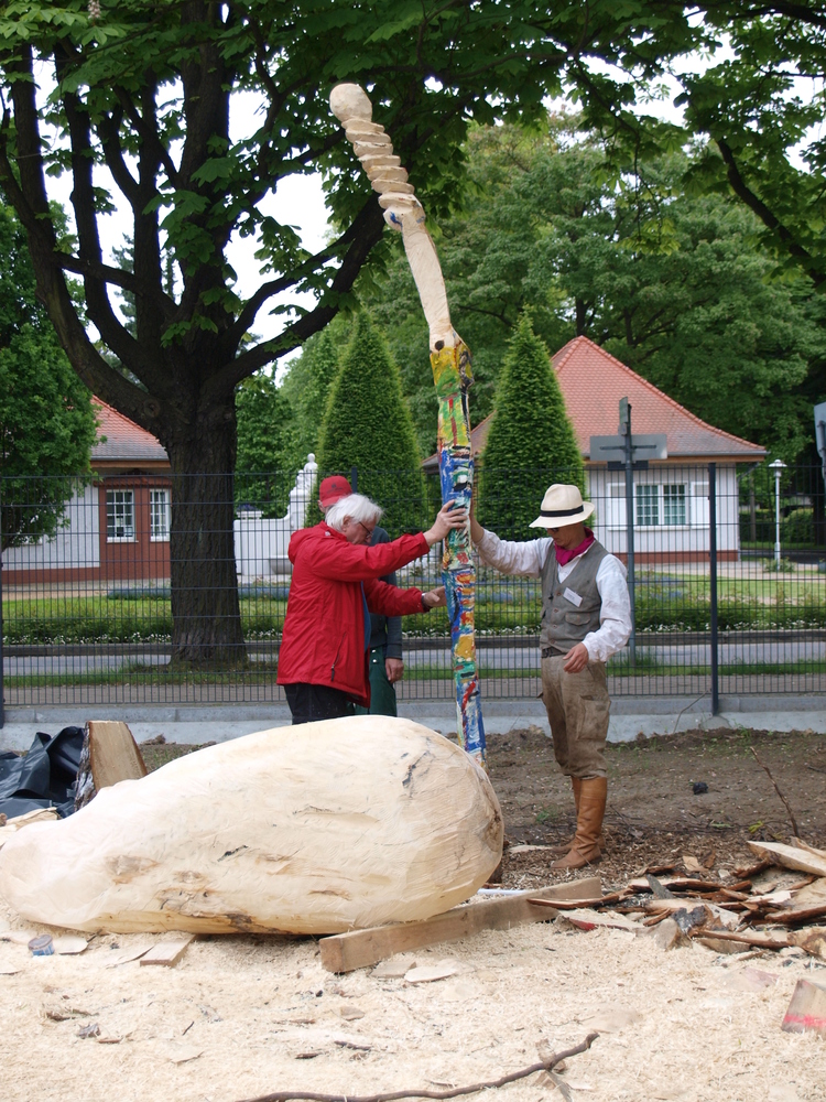 Steffen Mertens: „Das Leben ist ständig im Fluß. Alte Bäume werden gefällt, neue Bäume werden gepflanzt. Hier entstehen aus den alten Bäumen Kunstwerke. Sie leben darin weiter.“