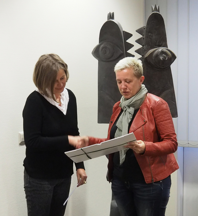 Simone Taubenek bedankte sich bei den Organisatorinnen für ihren Einsatz und würdigte ganz besonders Sabine Lindner, die sehr viel Zeit ehrenamtlich bei der Vorbereitung, der Kontaktaufnahme zu den Künstlerinnen und Künstlern und während des Symposiums eingebracht hat.