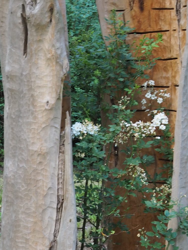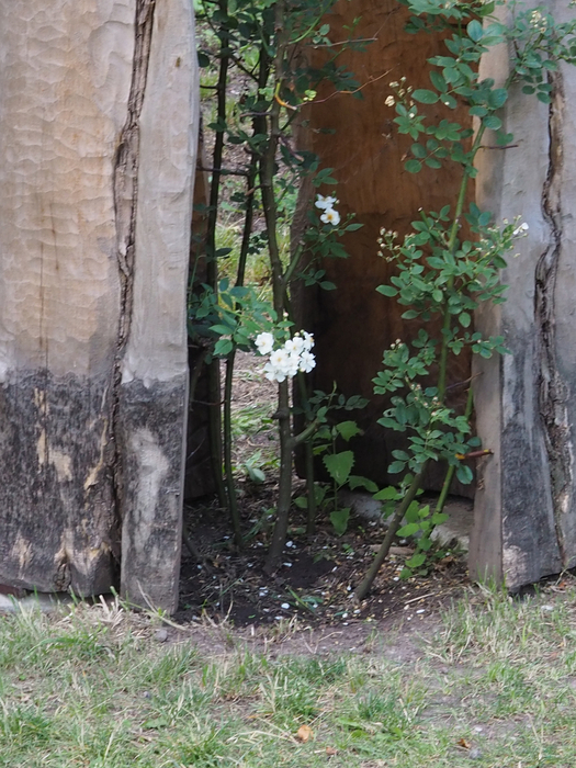 Weißdorn gehört zu den Rosengewächsen und so machte Stefan Palm den Vorschlag, die Kletterrose "Moscalbò" des italienischen Züchters Davide Dalla Libera dort zu pflanzen. Die Rose wuchs im Forster ADR Prüfgarten und konnte nach Abschluss der Prüfungsphase entnommen werde.