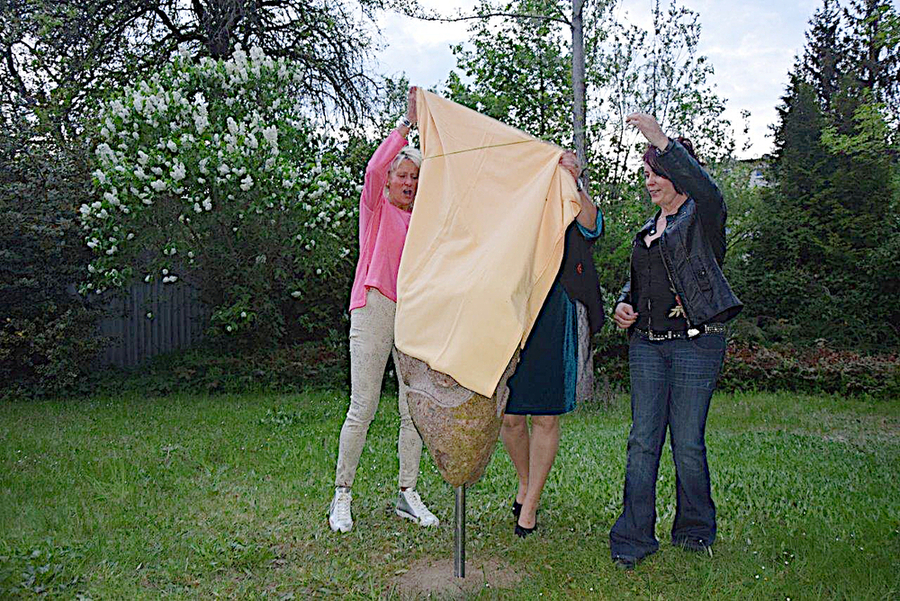 Angelika Geisler, Ewa Wojciechowska, Namoli Brennet (v.l.n.r.) Wer genau diesen Stein auf sich wirken lässt, bemerkt, dass der Titel „Embryo“ gut gewählt ist. |