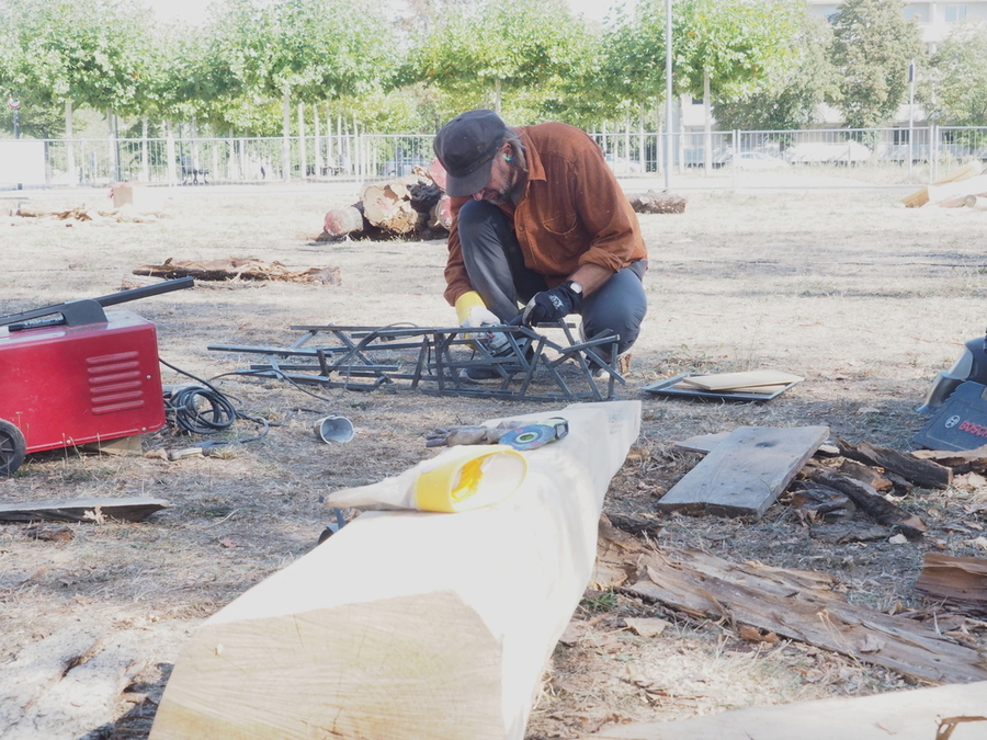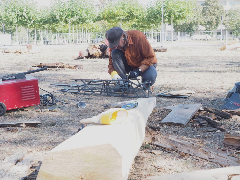 Als ich mich das erste Mal mit Michał unterhielt, passte er den Stamm an die Metallkrone, wie er sie nannte, an. Auf meine Frage, ob er bereits einen Namen für sein Kunstwerk habe, antwortete er: „Nein, einen Namen habe ich noch nicht. Ein kleines Mädchen sagte mir, sie würde einen guten Namen finden. Mal schauen, was sich ergibt.“ An einem anderen Tag erzählte er mir begeistert von dem leckeren Abendessen, das Iraner für sie zubereitet hatten und ihnen in ihrer Unterkunft bei der Freikirchlichen Gemeinde servierten. Er war beindruckt von der Kooperation der Künstlerinnen und Künstler aus fünf unterschiedlichen Ländern, den vielen Besuchern, die den Beteiligten über die Schulter schauten und Fragen stellten.
