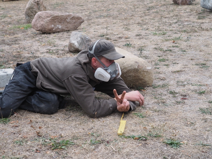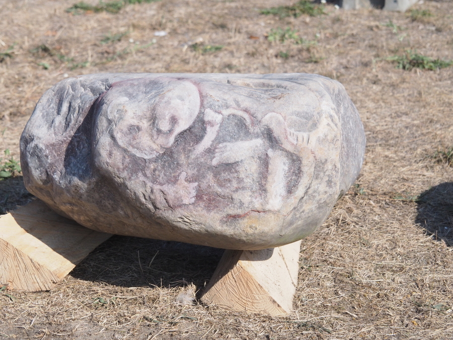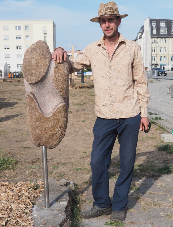 Markus ist einer der Künstler, der sich neben Jörg Tausch mit der Bearbeitung von Stein beschäftigte. Für mich war es spannend zu beobachten, welche Ideen sich entwickelten und wie die Bearbeitung eines Findlings täglich voranschritt.