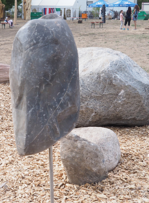 Jörg bearbeitete noch einen weiteren Stein, der auf einem Stahlstab aufgestellt ist. Diesen Stein hat er nur poliert, um bestimme Bereiche hervorzuheben (Foto 4).
