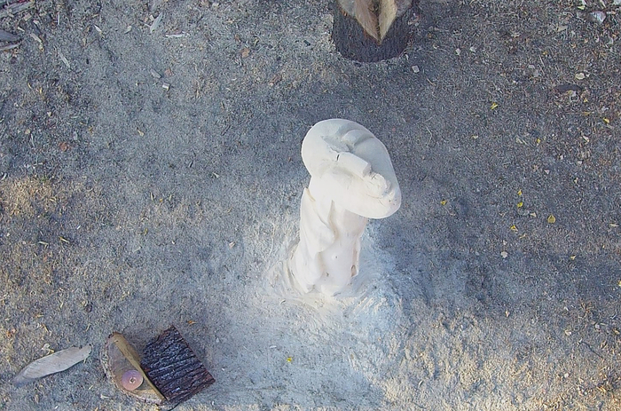Bei der Skulptur „Gespräch mit dem Himmel“ von Ingrid Struenze (Russland) ist das Gesicht nur aus der Perspektive von oben richtig zu sehen. Als viertes Kunstwerk habe ich noch die Skulptur "Neophyt" von Roswitha Schaab (Deutschland) aus der Luft fotografiert, da sie aus dieser Perspektive völlig anders wirkt.