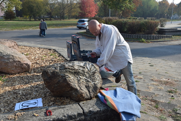 (23.10.2018) Neunzehn Findlinge hatten die beiden Künstler Markus Herold und Jörg Tausch zur Bearbeitung zur Auswahl.